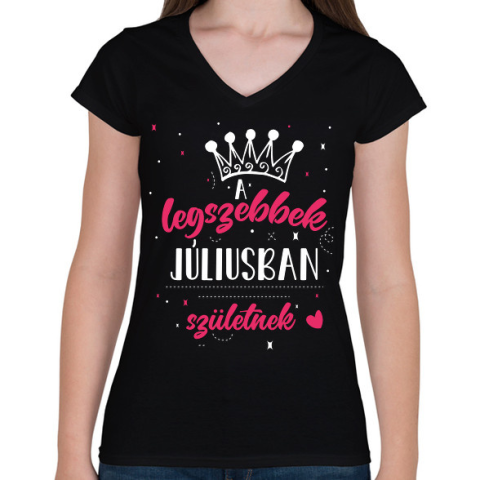 1 kép PRINTFASHION A legszebbek júlisban születnek - Női V-nyakú póló - Fekete