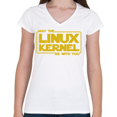 1 kép PRINTFASHION A Linux Kernel legyen veled - Női V-nyakú póló - Fehér