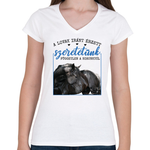 1 kép PRINTFASHION A lovak iránt érzet szeretetünk - Női V-nyakú póló - Fehér