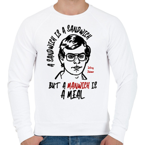 1 kép PRINTFASHION A manwich is a meal - Férfi pulóver - Fehér