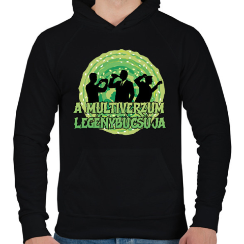 1 kép PRINTFASHION A multiverzum legénybúcsúja - Férfi kapucnis pulóver - Fekete
