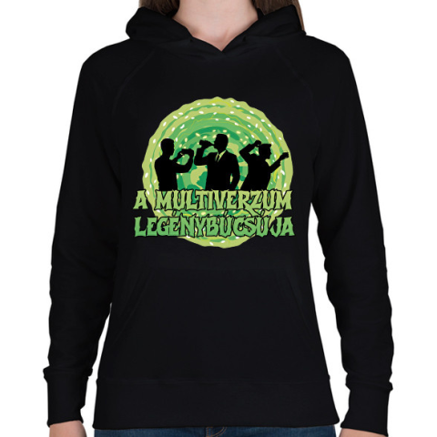 1 kép PRINTFASHION A multiverzum legénybúcsúja - Női kapucnis pulóver - Fekete