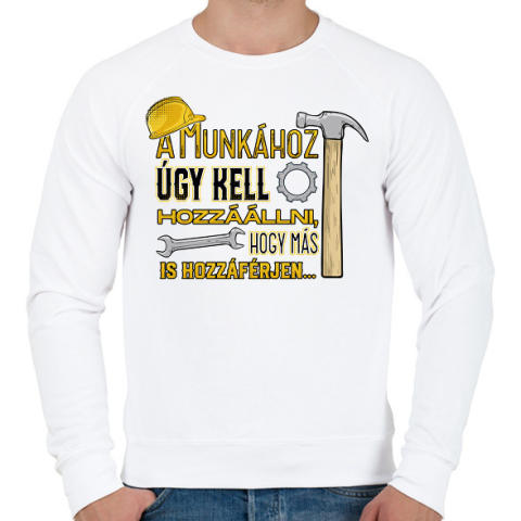1 kép PRINTFASHION A munkához úgy kell hozzáállni hogy más is hozzáférjen - Férfi pulóver - Fehér