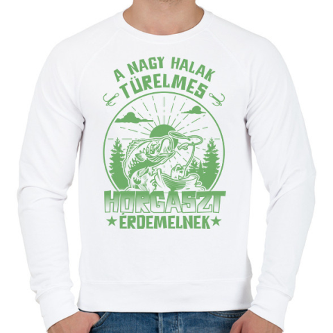 1 kép PRINTFASHION A nagy halak türelmes horgászt érdemelnek - Férfi pulóver - Fehér