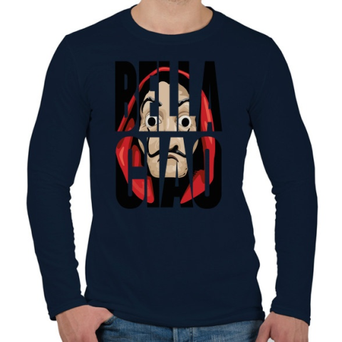 1 kép PRINTFASHION A nagy pénzrablás - Bella ciao - Férfi hosszú ujjú póló - Sötétkék