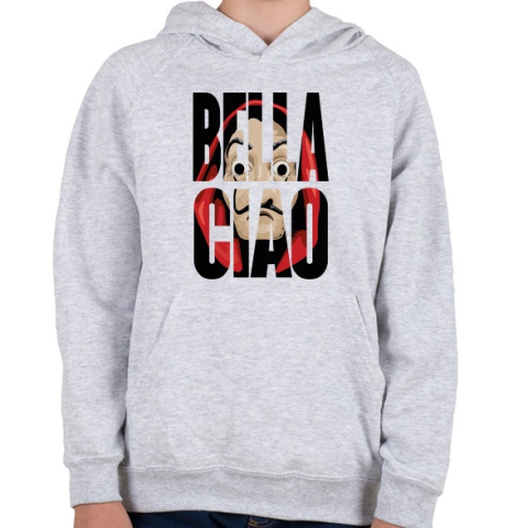 1 kép PRINTFASHION A nagy pénzrablás - Bella ciao - Gyerek kapucnis pulóver - Sport szürke