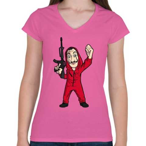 1 kép PRINTFASHION A nagy pénzrablás - Női V-nyakú póló - Rózsaszín
