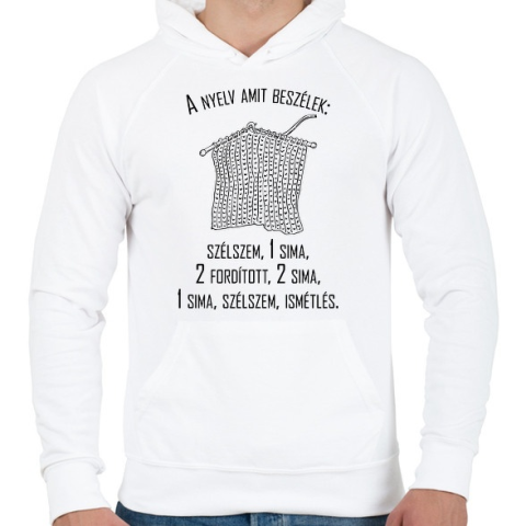 1 kép PRINTFASHION A nyelv amit beszélek - kötni, horgolni - Férfi kapucnis pulóver - Fehér