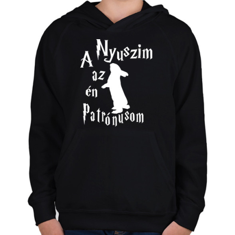 1 kép PRINTFASHION A Nyuszim az én Patrónusom - Gyerek kapucnis pulóver - Fekete
