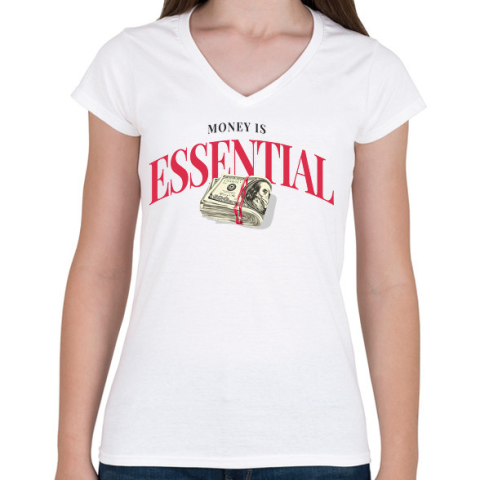 1 kép PRINTFASHION A pénz fontos - Női V-nyakú póló - Fehér