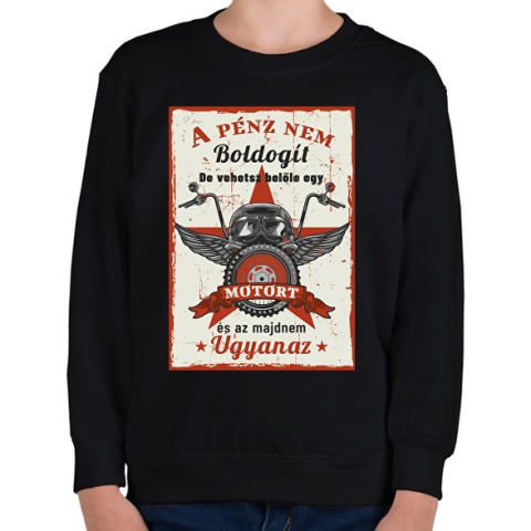 1 kép PRINTFASHION A pénz nem boldogít - Motoros minta - Gyerek pulóver - Fekete