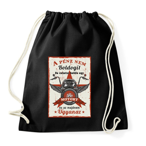 1 kép PRINTFASHION A pénz nem boldogít - Motoros minta - Sportzsák, Tornazsák - Fekete