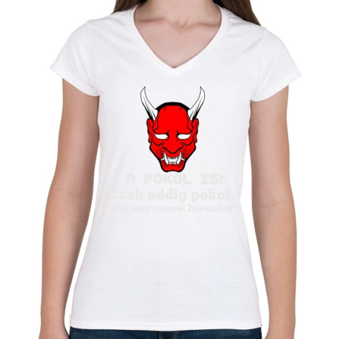 1 kép PRINTFASHION a pokol is! - Női V-nyakú póló - Fehér