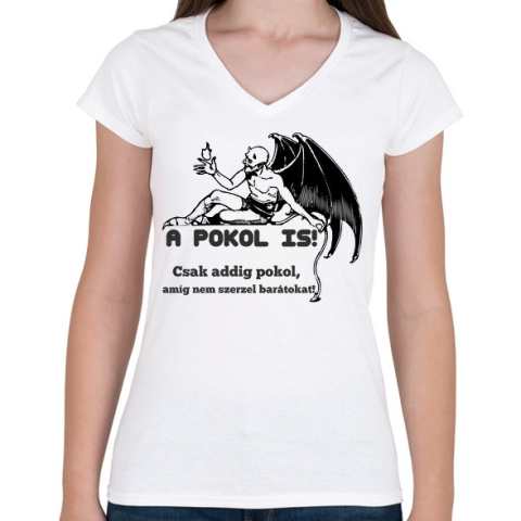 1 kép PRINTFASHION a pokol is! - Női V-nyakú póló - Fehér