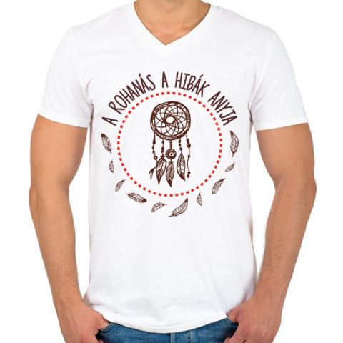 1 kép PRINTFASHION A rohanás - közmondás - Férfi V-nyakú póló - Fehér