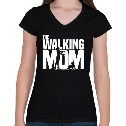 1 kép PRINTFASHION A sétáló anya - Női V-nyakú póló - Fekete