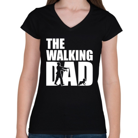 1 kép PRINTFASHION A sétáló apa - Női V-nyakú póló - Fekete