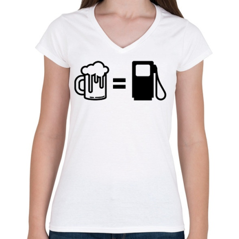 1 kép PRINTFASHION A sör az én üzemanyagom - Női V-nyakú póló - Fehér