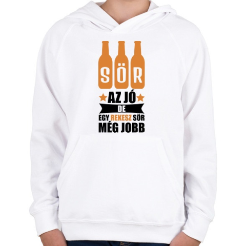 1 kép PRINTFASHION A sör az jó - Gyerek kapucnis pulóver - Fehér