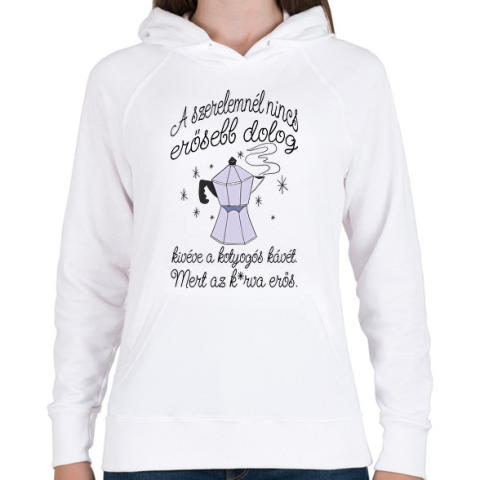 1 kép PRINTFASHION A szerelemnél nincs erősebb. Kivéve a kotyogós kávét - Női kapucnis pulóver - Fehér