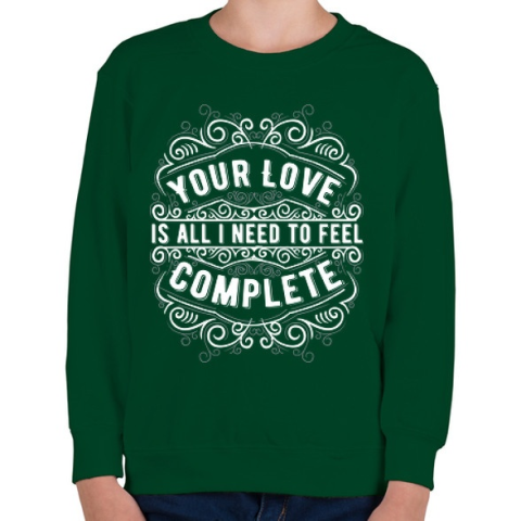 1 kép PRINTFASHION A szerelmed elég, hogy teljesnek érezzem magam! - Gyerek pulóver - Sötétzöld