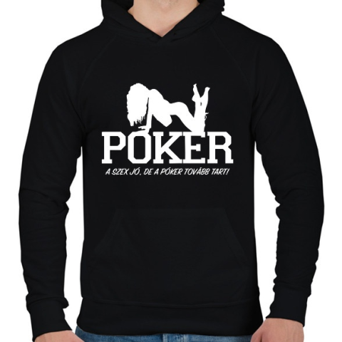 1 kép PRINTFASHION A szex jó, de a póker tovább tart - Férfi kapucnis pulóver - Fekete