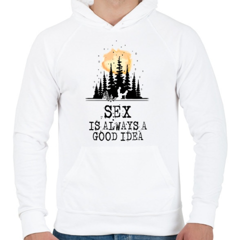 1 kép PRINTFASHION A szex mindig egy jó ötlet - Férfi kapucnis pulóver - Fehér
