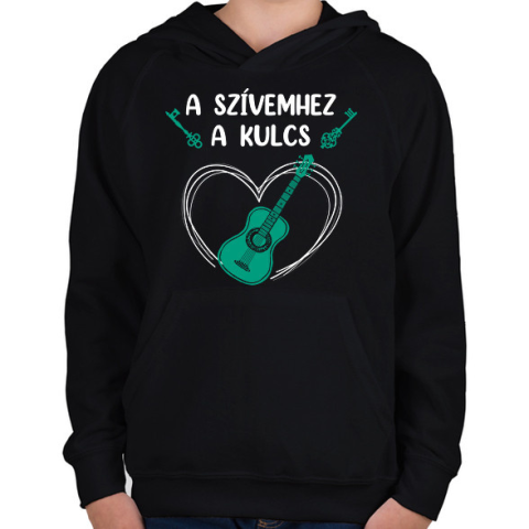 1 kép PRINTFASHION A szívemhez a kulcs - Gitár - Gyerek kapucnis pulóver - Fekete