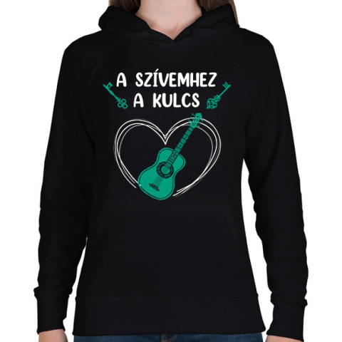 1 kép PRINTFASHION A szívemhez a kulcs - Gitár - Női kapucnis pulóver - Fekete