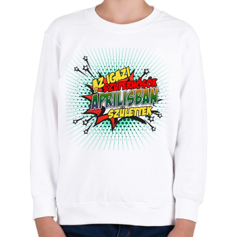 1 kép PRINTFASHION A szuperhősök áprilisban születtek - Gyerek pulóver - Fehér