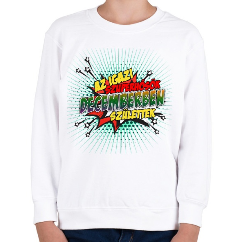 1 kép PRINTFASHION A szuperhősök decemberben születtek - Gyerek pulóver - Fehér
