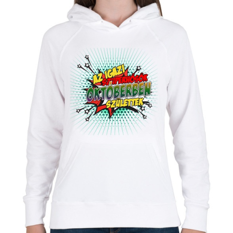 1 kép PRINTFASHION A szuperhősök októberben születtek - Női kapucnis pulóver - Fehér