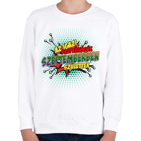 1 kép PRINTFASHION A szuperhősök szeptemberben születtek - Gyerek pulóver - Fehér