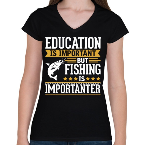 1 kép PRINTFASHION A tanulás fontos, de a pecázás fontosabb - Női V-nyakú póló - Fekete