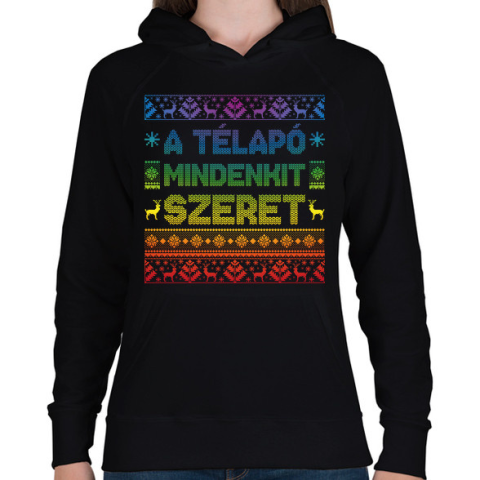 1 kép PRINTFASHION A télapó mindenkit szeret - Női kapucnis pulóver - Fekete