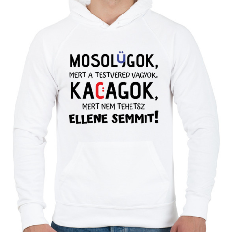 1 kép PRINTFASHION A testvéred vagyok :) - fekete - Férfi kapucnis pulóver - Fehér