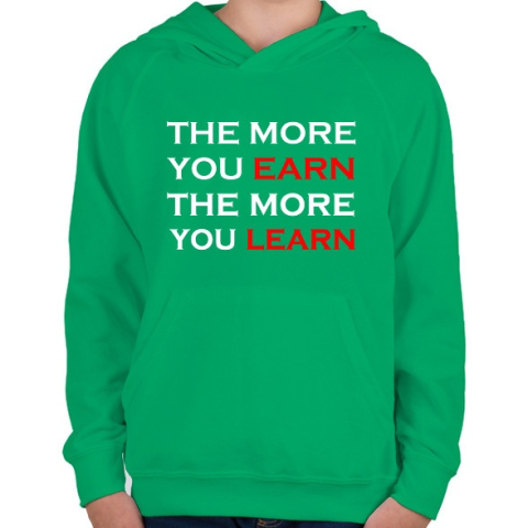 1 kép PRINTFASHION A több dolog amit elérsz, abból mindig tanulsz - Gyerek kapucnis pulóver - Zöld