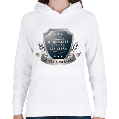 1 kép PRINTFASHION A tökéletes férfiak június - Női kapucnis pulóver - Fehér