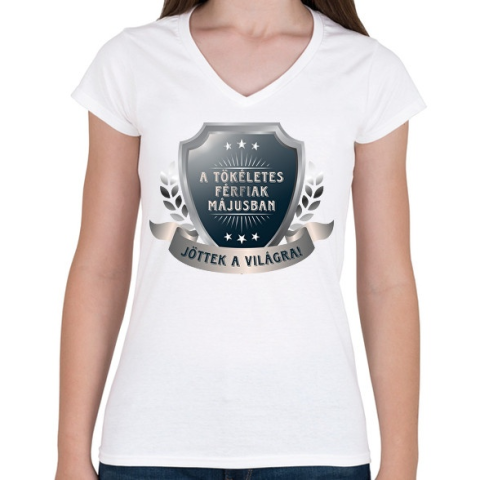 1 kép PRINTFASHION A tökéletes férfiak május - Női V-nyakú póló - Fehér
