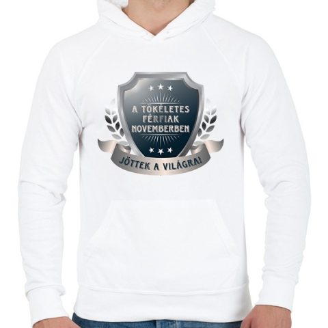 1 kép PRINTFASHION A tökéletes férfiak november - Férfi kapucnis pulóver - Fehér