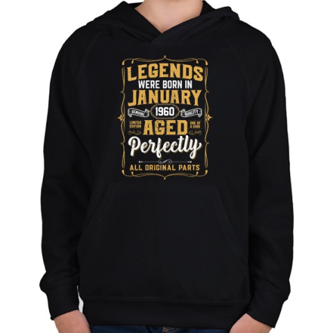 1 kép PRINTFASHION A tökéletes legendák januárban születtek - Gyerek kapucnis pulóver - Fekete