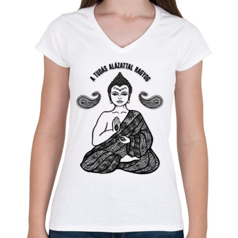 1 kép PRINTFASHION A tudás alázatosan ragyog - Női V-nyakú póló - Fehér
