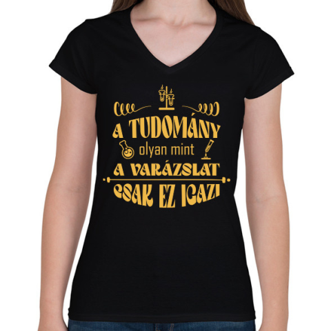 1 kép PRINTFASHION A tudomány olyan mint a varázslat - Női V-nyakú póló - Fekete