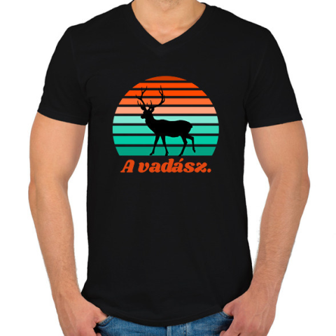 1 kép PRINTFASHION A vadász - Férfi V-nyakú póló - Fekete
