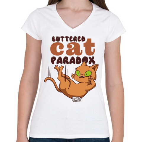 1 kép PRINTFASHION A vajazott macska paradoxon - Női V-nyakú póló - Fehér