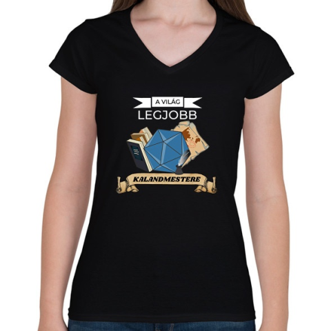 1 kép PRINTFASHION A Világ Legjobb Kalandmestere (kék) - Női V-nyakú póló - Fekete