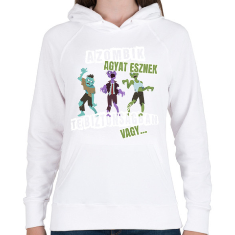 1 kép PRINTFASHION A zombik agyat esznek te biztonságban vagy - Női kapucnis pulóver - Fehér