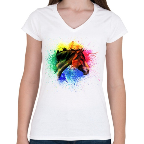 1 kép PRINTFASHION absztrakt ló arc - Női V-nyakú póló - Fehér