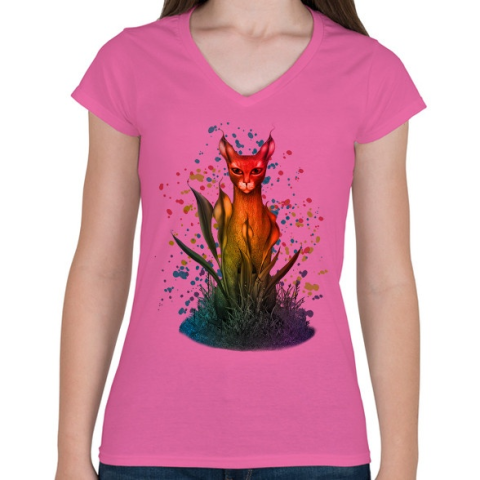 1 kép PRINTFASHION absztrakt macska - Női V-nyakú póló - Rózsaszín