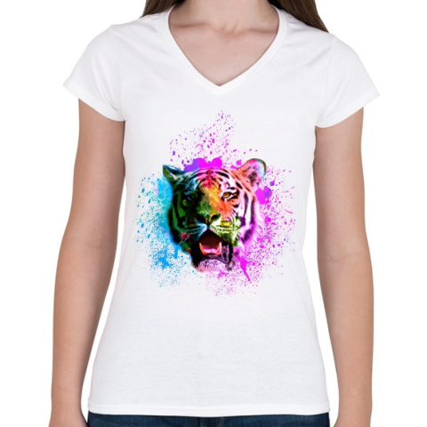 1 kép PRINTFASHION absztrakt tigris arc2 - Női V-nyakú póló - Fehér